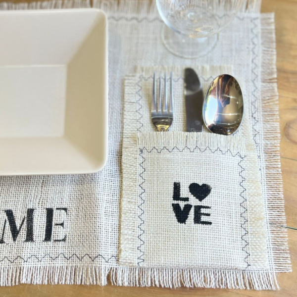Porta cubiertos de arpillera color natural 🤍 Confeccionado a mano, con detalles de costura y estampa en color negro👐🏼