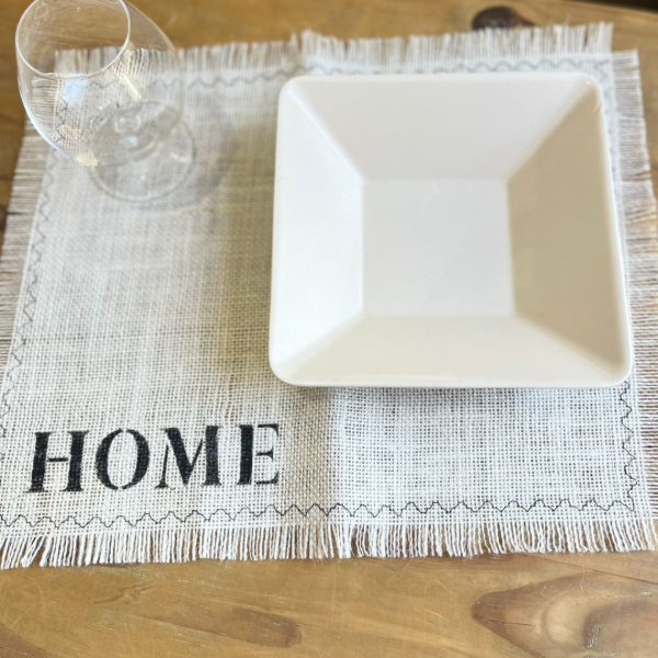 Set x 6 individuales de arpillera color natural 🤍 Confeccionado a mano, con detalles de costura y estampa en color negro👐🏼