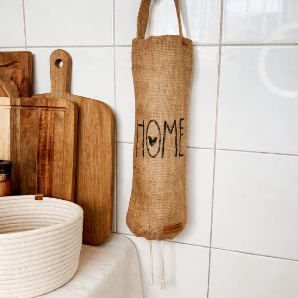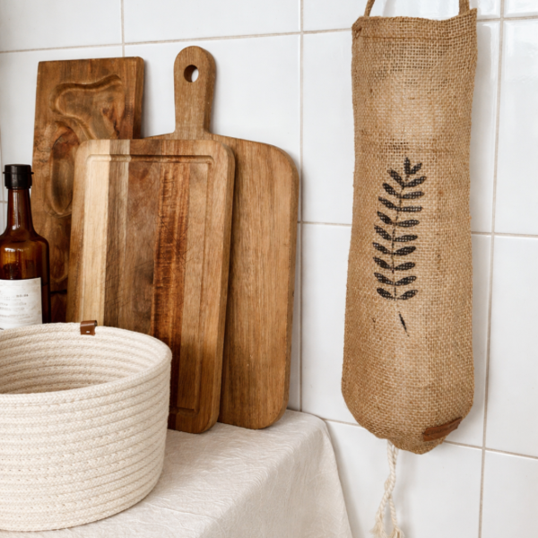 Confeccionadas en arpillera y estampadas a mano en color marrón 🪡👐🏼